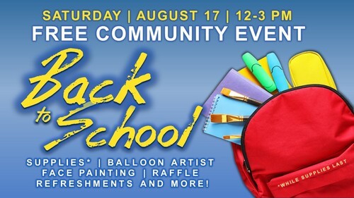 We are here to serve our community! August 17 from 12-3 pm we are having our "Back to School FREE Community Event". It will be a fun-filled day with supplies giveaway*, balloon artist, face painting, raffle, refreshments and much more. To assist students and their families as they return for the 2024 school year, 200 backpacks filled with school supplies will be given away.