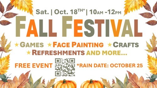 Let's celebrate fall together with games, face painting, crafts and refreshments. There is no cost, simply register to let us know you're coming.